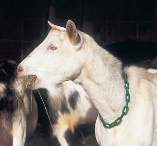 Several characteristics distinguish Nubians from other dairy breeds: They have floppy ears, a convex, Roman nose and an energetic disposition some say is just plain stubborn. Another large breed with myriad coat colors, Nubians are known as the Jerseys of the goat world for producing milk with high butterfat content.