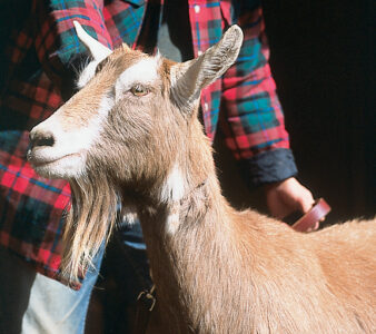 Native to West Africa, the Nigerian Dwarf dairy goat has a straight nose, upright ears, and a soft short to medium coat. The breed’s smaller size — mature does weigh between 50 and 70 pounds — friendly personality and variation in coat color (any color combination is acceptable in the breed standard) make Nigerians very appealing.