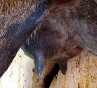Before a doe is bred her teats will be like two little fingers attached to her belly right before her hind legs. Before she is bred, check and see if there are only two of them. Sometimes there is a third that is close to the larger one, this is called a spur. They can be removed at birth very easily. There is also a double teat that has two openings. You don’t what that either. I hope you check this before buying any doe. This is a breeding fault and you don’t want to breed this trait into her offspring. It is hard to milk this teat also.