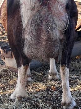 This is BootsRMade4Walkin and she is one that is not hairy in the winter. This photo is of her 2nd freshening this past Dec. 2012, the day before she had twin girls. I don’t like to see the teats below the hock(elbow) as the doe can step on it when she stands up and it will cause problems. If you have a first freshener (a doe that is going to have kids for the first time) please remember that with every freshening her udder will get a little bigger. By the time she has had kids for 5 years, it will be what it will be, again this is not written in stone. I don’t like to see the teats below the hock(elbow) as the doe can step on it when she stands up and it will cause problems. Enjoy the pictures.