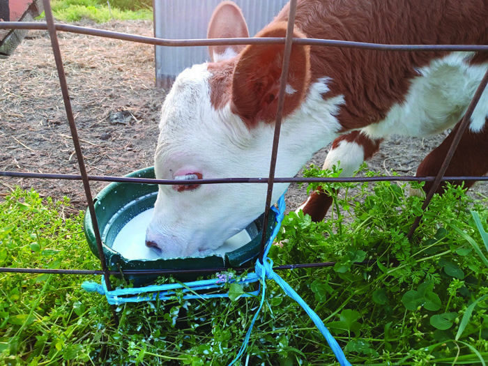 Pigs are content to clean up extra milk and will also be in the freezer by autumn.