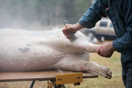 Having extra hands on deck will make it faster. You might be surprised at how many people are interested in the process and would be willing to help. There is a reason pig butchering used to be a family or community event. Pigs are large animals, they are heavy, and having a few strapping folks around makes the process easier. Not only do strong arms help with the physical work, but having more people helps lighten the emotional toll of the slaughter. Sending folks home with fresh pork is a great incentive to encourage friends and family to participate.