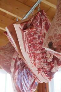Growing up, I also had the opportunity to live in rural America, where the butcher shop didn’t hide the fact that meat came from animals–half hogs and steers hung in the butcher shop windows for all to see. The butchers cut off the piece you wanted to buy right in front of you; you knew exactly what you were getting and from where it came. I’m thankful that I had firsthand experience with what it takes to put meat on the table. For me, meat didn’t come from a grocery store. It comes from farms, from the woods, and from butchers who see their work as an art form. My experiences gave me a deep appreciation for life and a keen sensitivity to death, especially when it relates to the table. All of these experiences influenced our decision to process our pigs right here on the farm.