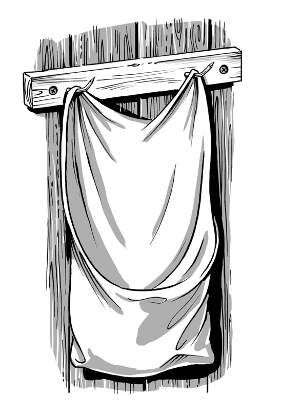 Skinning knife, skinning hooks, and hide stretcher. These are needed only if you are slaughtering your own meat rabbits. A good knife is a “boning knife,” which is used in most commercial slaughter plants because of its ideal size and shape for rabbit processing. Skinning hooks, made of plated steel, are specifically shaped to hold the carcass in the correct position for dressing. Mine are attached to a board that I hang on the wall of the barn. I like to place a large black plastic garbage bag under everything to catch the offal.