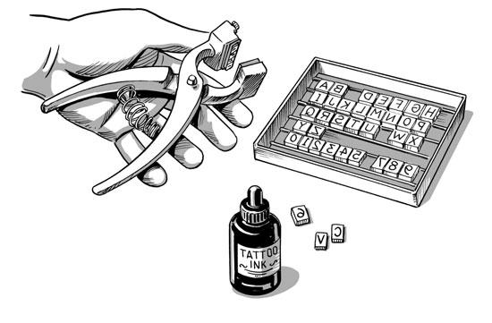 Tattoo set. If you plan to enter your rabbits in shows, they need an identifying number or letters in the left ear. And even if you don’t show, after you raise a few rabbits you will find no better way to keep track of who’s who in the herd. I prefer the pliers type, but you can also buy one that is battery-operated. If you don’t have room for a table in your rabbitry, you can make a shelf that folds down from the wall and use that for tattooing.