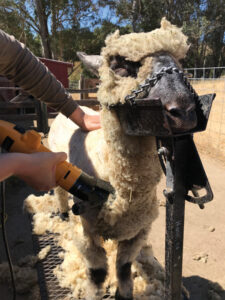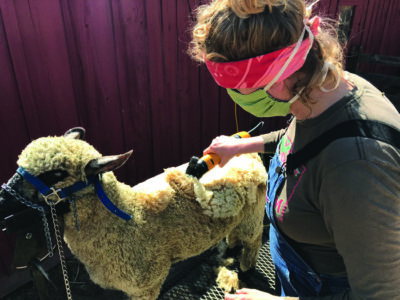 Remove all of your jewelry, including wedding bands. Before you start each sheep, look for metal ear tags, collars, and anything that might be stuck in their fleece. This step is critical, because if you hit metal with your handpiece, it will turn into shrapnel. Thorny plants, such as devil’s claws, can also be dangerous.