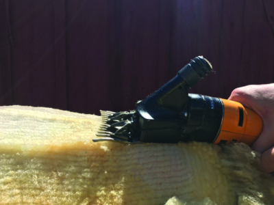 Comb selection and preferences should depend on sheep breed and the conditions in which they’re sheared, but most of the time, a 13-tooth comb without splayed edges shears most breeds safely and well. The number 13 refers to the number of teeth across the width of the comb. There are also 20-tooth combs, used for slick shearing on show sheep that have already been sheared, and combs with nine or 10 teeth. A nine- or 10-tooth comb automatically increases the risk of cutting your sheep, no matter how careful you are, because there’s too much space between the teeth — enough to cut off a teat or the tip of a finger. A 20-tooth comb may seem safest, but it won’t get much wool off. You may end up pushing the handpiece to make up for the comb’s shortcomings, and cut the sheep as a result. I’ve never needed a 20-tooth comb or a nine- or 10-tooth comb; a 13-tooth comb has served all my needs.