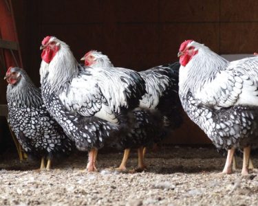 The three breeds previously mentioned — Australorps, Speckled Sussex, and Ameraucanas — are definitely winners when it comes to cold-weather survival. They are three of my favorites. Another one of my favorites is the heritage breed, Dominique. The Livestock Conservancy recognizes these little black-and-white barred birds as America’s first chicken breed. They were popular in Colonial times and moved west with the settlers. They are calm, good layers, and actually make good pets.