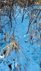 Canines leave fewer signs than raccoons, so when I find a single set of canine tracks in the snow, I set a snare. They’ll usually follow the exact footprints they used previously, and the snare is then waiting.