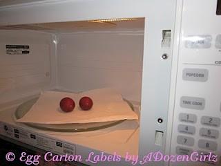 I like to dry out the eggs in the microwave to ensure sanitation. I heat them in 12 second intervals, four to six times. These eggs are hot when removed from the microwave oven (it’s easy to forget).