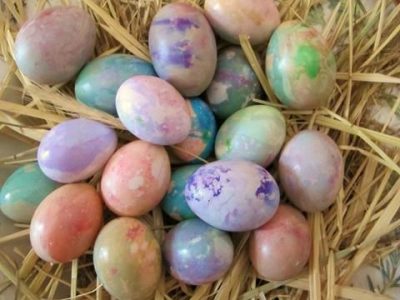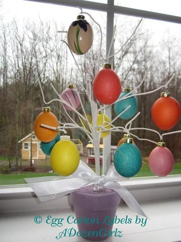 I made a Christmas Egg Tree and an Easter Egg tree last year. Dying blown Easter eggs can be made in the same way hard-cooked eggs are.