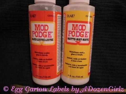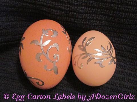 I use rub-ons or stickers from my local craft store. They’re easy to use and look pretty. The eggs are finished with a thin layer of decoupage, applied with a brush.