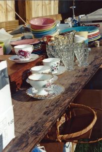 I came home that day with money in my pocket, the prized cookbook and a niggling feeling that there was more to this bidding thing than just a one-item sale. For the next couple of auctions I dove pell-mell into the proceedings with the same nervous freedom but slightly different results. Days after those auctions I could be found sitting on the tailgate, sorting through boxes, bagging up the discards and carrying in a few cherished items deemed important enough to keep. Auctioneers loved me for I could not pass up the jumbled-together “boxed lots.”