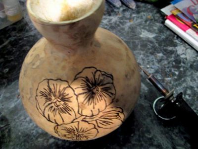 She also received a woodburning tool and a book on the subject since she expressed her fascination with the art. I was shocked at how beautiful the vase turned out and so was everyone else! I am hooked now; I just have to wait to grow the gourds this upcoming season! Although you can purchase dried, clean gourds from several places on-line.