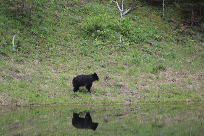 On the left side of the road, we spotted a grizzly bear sow with three cubs. Despite the early hour, more than a few people were leaving their vehicles and getting way too close to the bears, all trying to get a perfect photo with their cellphones. After taking a few photos, we moved on.