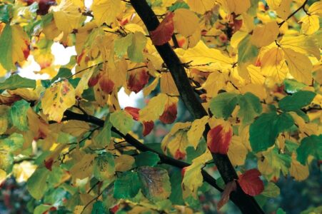 The Persian parrotia (Parrotia persica) is a medium-size landscape tree that will add interest not only in the fall but all season long. Parrotia will grow to 35 feet tall with a rounded habit. This tree’s new foliage emerges purple, turns to dark green during the summer and then develops scarlet-orange hues in the fall. It is not the easiest plant to find in nurseries, but if you garden in Zones 4 to 8 and can find one, give it a try.