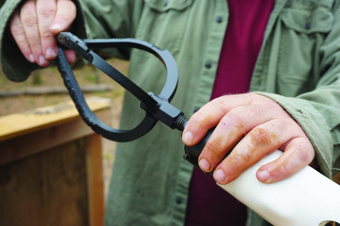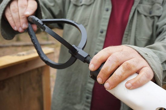 Move the drill in an up, down, and side-to-side motion as this will help the drill drive through the soil. The motion should be constant but not forceful; the drill will do the work. When you reach the point of needing to add more pipe, pull the running drill from the hole and, once it’s out of the water, turn the air pressure off. As you add pipe, secure each addition with PVC glue.