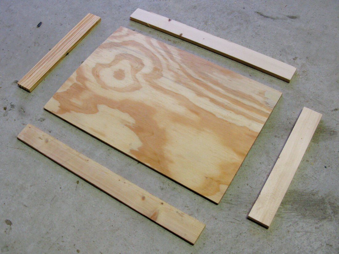 These plans are for a Layens swarm trap that will accept six Layens frames. You can also find plans for swarm traps accepting Langstroth frames at HorizontalHive. The materials listed here are enough to make six full swarm traps, with a few extra pieces of plywood for the next time.