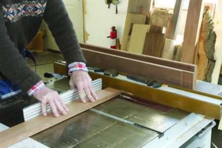 Step 1: Mill your rails and stiles to end up with two stiles, straight, flat, square that are 3-1/4 inches wide by 1 inch thick and at least 80 inches long. As you’re working with 2-by-4 material, you can make a door up to about 1-3/8 inches thick if you prefer and have room for it in the jamb, but 1 inch is thick enough. At the same time, mill the rails to the same thickness, all a little long if possible. As they are shorter, they may not need to be fine-tune milled the same number of times, but be sure they end up the same thickness as the stiles and just as straight and square.