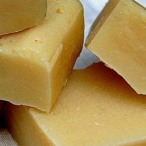- Once the mixture is firm enough (generally 24 to 48 hours), turn your mold upside down onto a parchment or wax paper covered surface. If needed, use a knife or other tool to cut the soap into the size.