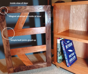 2. Use a cabinet magnet on the inside to give the door a secure closure. Line up the two pieces well so the magnet will catch. You can skip the magnet, but when you close that door and that magnet catches, it’ll feel like a little bit of magic you’ve created!