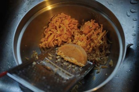 - Roughly grate the soap. I used two bars of goat’s milk soap because that’s what I have handy from my family’s goat’s milk soap business. I also believe that using soap heavy in animal protein and made from animal fats works better for leather, just as it’s better for human skin.