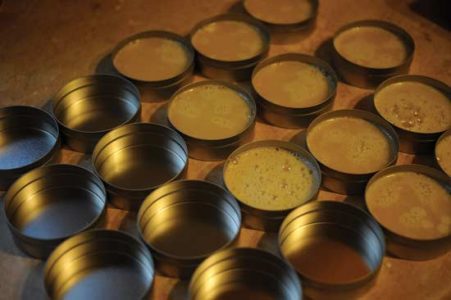 - Set out your open containers of saddle soap to cool before adding lids and labels.