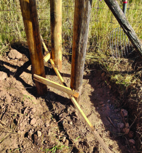 - Nail the two 6-1/2-foot wooden posts together with sticks and place them in the hole. Place rocks around the base of all the posts to hold them. Then, backfill the hole and compact the material used to backfill it.