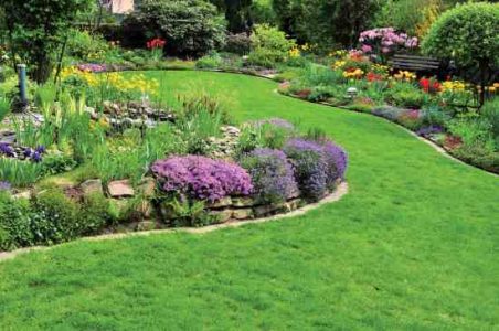 Now it’s time to plant. As a general rule, plant shrubs 3 feet apart, perennials 1 foot apart, and annuals 6 to 8 inches apart. Apply 3 inches of mulch, and water plants immediately after installation.