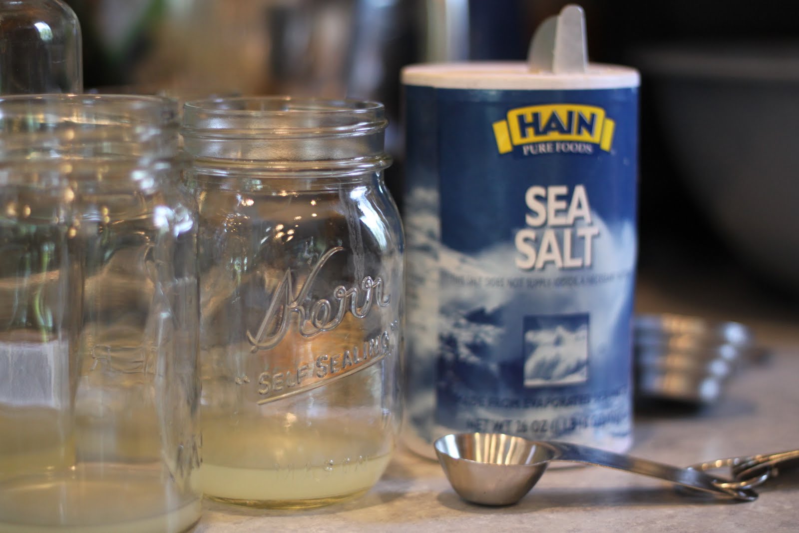 1 TBSP sea salt per quart jar (halve it for pint jars, etc)