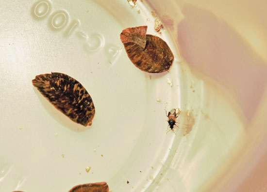 Before purchasing parasitoids, check the extended weather forecast in your area to make sure rain or extreme heat is not expected. Most companies advise against holding onto your shipments for more than a couple of days, so you want to be sure conditions will be favorable for release before purchasing the insects. Parasitoids are often shipped in the pupal stage, but some may have already emerged as adults. For best results, make sure to read and follow all the provided release instructions carefully. Your pupae may arrive on cards that are specifically designed to be attached to plants, or they may be sent in a bottle mixed with a carrier such as woodchips, seed husks, or vermiculite.