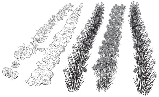 When selecting your plant mix, it is a good idea to talk with a local native plant producer to learn more about the native flora for your region and to determine the species that will do best. These plantings can include native trees, shrubs, and herbaceous plants.