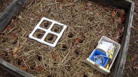 Wind and spray from a garden hose can close up these holes, so I have to watch them until the seedlings are tall enough to fend for themselves. But, again, the straw helps to retain moisture and discourage weeds. Straw does also invite slugs, so I have to watch for them and set in a slug trap (shallow dish of beer) if they decide to move in.