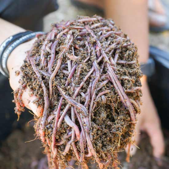 The ground beneath the area where the worms are being raised should be loosened and protected against predators (moles) from beneath with a mesh of chicken wire. On top of this surface should be a layer (about four inches or ten centimeters) of heavily decomposed material (e.g., compost, garden soil, and decomposed manure). Above that should be a second layer, made up of partly decomposed material (raw compost). Then the worm substrate (large and small worms, including eggs) should be spread on top of this layer. Above that, the worm food should be spread in thin layers. If the temperature exceeds 86 degrees Fahrenheit, then too much material was added. A soil thermometer is essential for checking the temperature. Keep everything nicely moist. If conditions are agreeable, the brandlings will eat their way up to the top as they are drawn to the freshly added food.