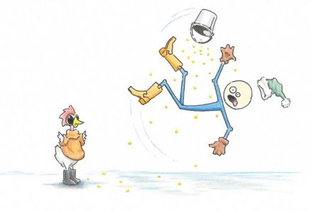 I use an old metal feed scoop, although any sort of shovel or small recycled container will do the trick, and sprinkle it wherever I think anyone might want to venture. I concentrate on the walkways and paths that my animals and I have created over the course of the season.