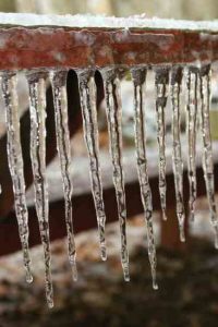Plants that live below the eaves or several feet away from a building roof’s drip line are especially vulnerable to ice (and snow) cascading from the roof – greenery situated in harm’s way needs to be protected.