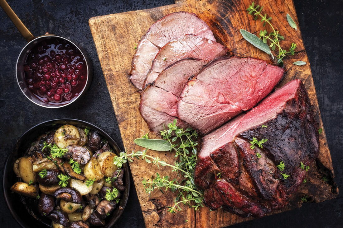 Muscles contain long bundles of fibers that run parallel to each other. These bundles of fibers form the grain of the muscle. Once the muscles are separated and the grain is identified, it’s time to cut the muscles into smaller pieces. The naturally tender muscles along the backbone (tenderloins, backstrap, and rump) make the best steaks. Steaks are 3/4-to-1-inch-thick slices of muscle cut across the grain, best cooked quickly over direct heat as single servings.
