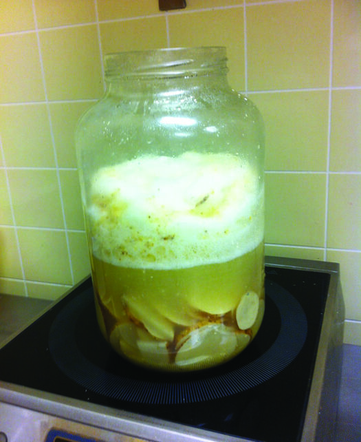 - Cover jar with plastic wrap and poke a hole for air. Keep starter in a warm place (between 103 and 110 degrees Fahrenheit) overnight, until it becomes stinky and foamy. (The starter must stay between 103 and 110 degrees Fahrenheit to get a successful fermentation. One way to keep the temperature steady at 104 degrees Fahrenheit is to use a multifunctional food cooker on the yogurt setting.)