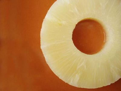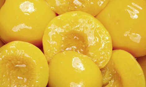 This version of the Friendship Bread starter uses several types of canned fruit, including peaches and pineapples, left to ferment in an apothecary jar.