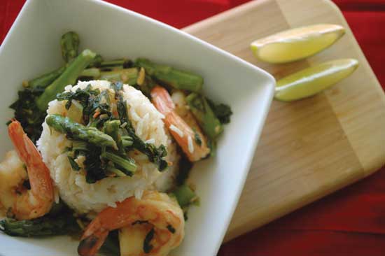 This dish is the epitome of quick and easy. Using only a few ingredients, this Asian-style shrimp stir-fry recipe packs a flavorful punch while capturing the essence of spring. As in all stir-fry recipes, success comes down to preparation ahead of time because once your pan comes up to temperature, the magic happens in just a couple of minutes. You’ll also want to remember to keep stirring those ingredients — hence the term “stir-fry.”
