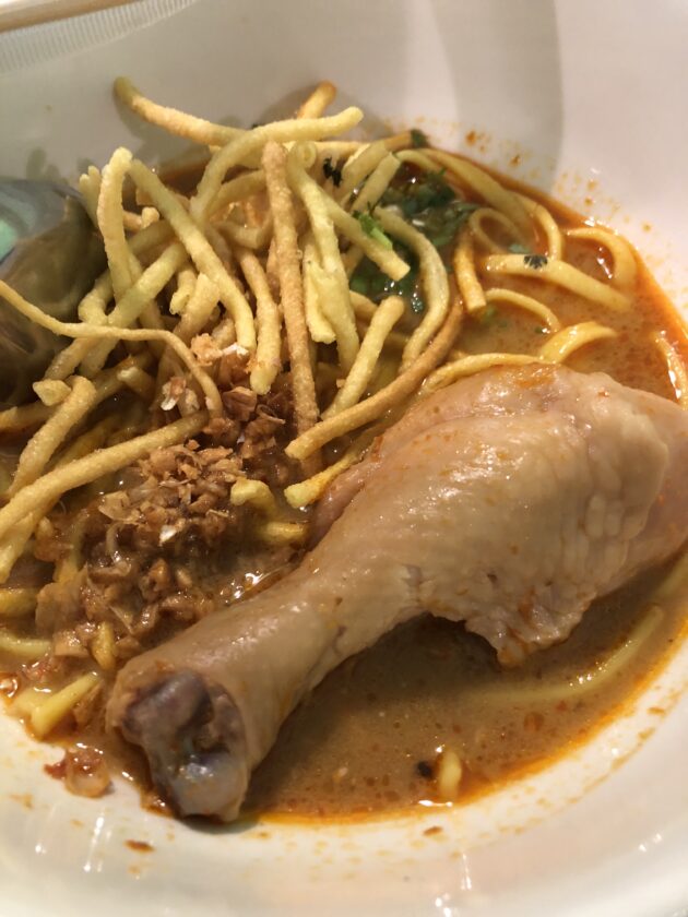 Cool meat. Remove all bone, skin and gristle. Add a couple of handfuls of noodles to broth. Cook until tender. Add back the meat cut into chunks. Soup may be thickened with cream but do not boil or with creamed corn for extra flavor and nutrition.