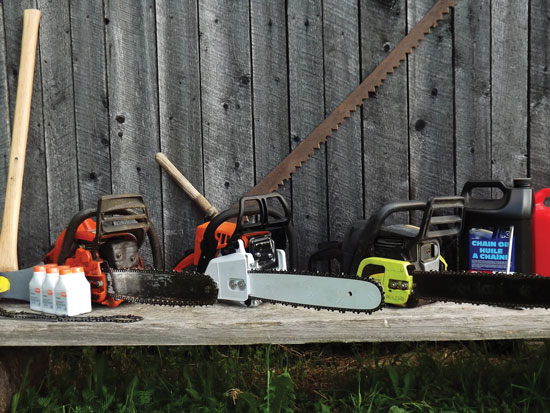 Use a chainsaw that is well-suited to the job. You should be comfortable with the weight and balance of the saw. Don’t try to be macho by putting a longer bar on your saw. It is just that many more teeth to sharpen when you hit a rock, and it is more likely that the nose of the bar will dig into a piece of wood and kick back at you. A 16-inch bar is good for most firewood-size trees, even if your saw is big enough to handle a longer one.